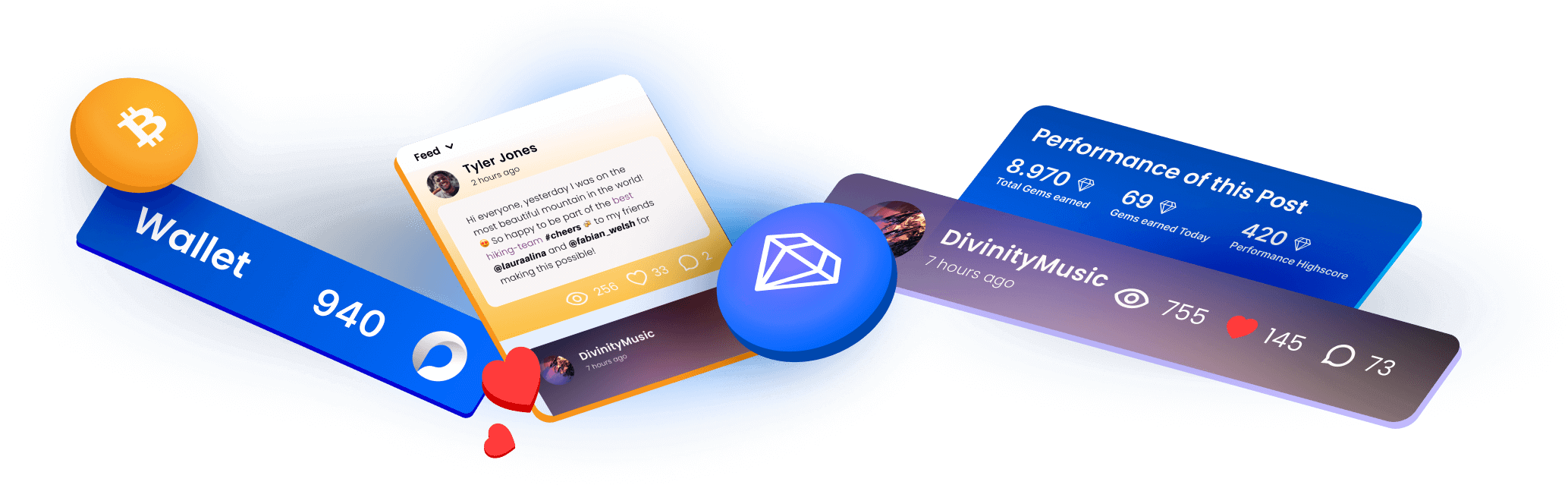 Our blockchain system tracks interactions immutably, letting you verify earnings in real-time as likes, comments, and shares convert to Gems and Peer Tokens.